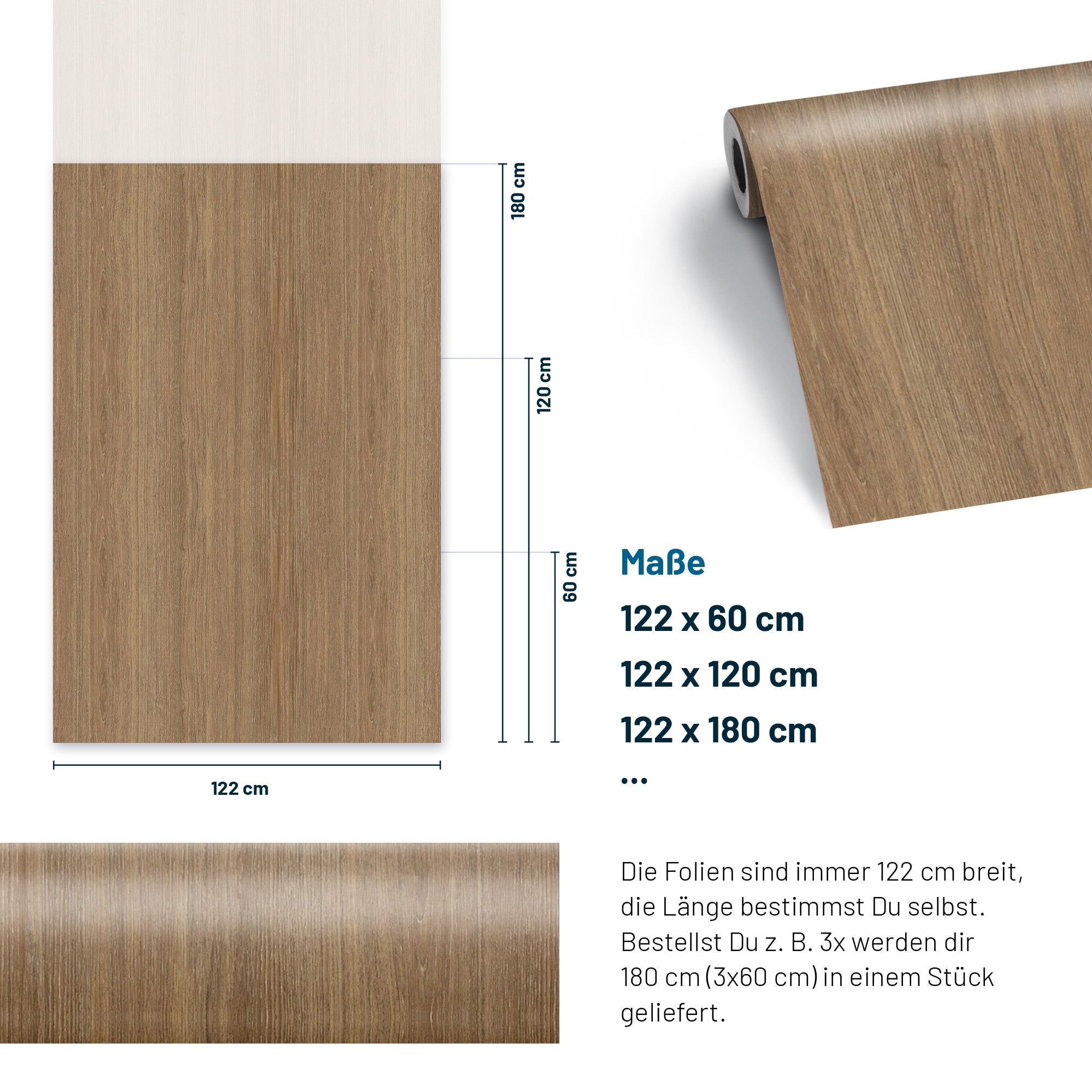 Packe Dir die Position mehrfach in den Warenkorb und wir liefern die Folie am Stück.