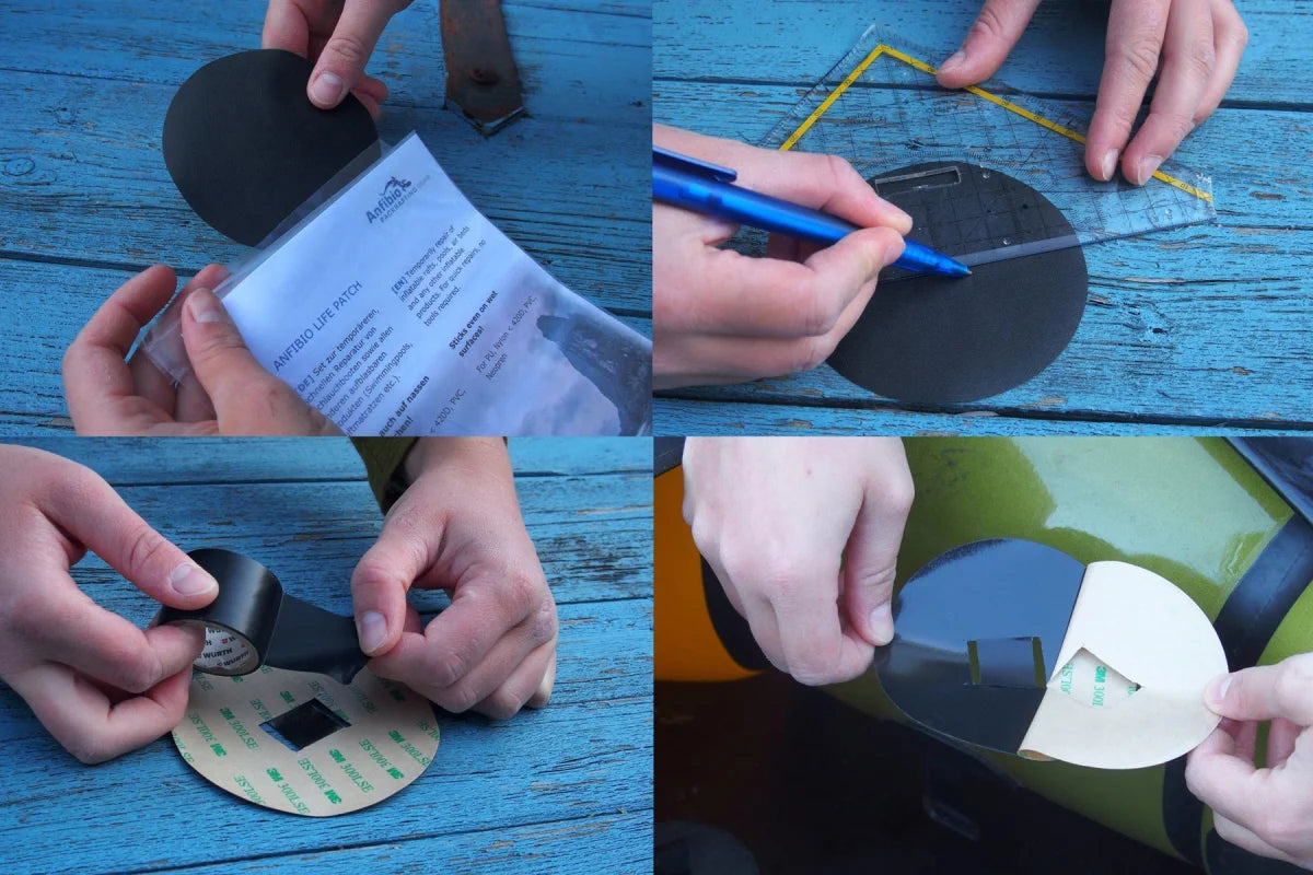 Anfibio Life Patch ist ein Set zur temporären, schnellen Reparatur von Schlauchbooten sowie allen anderen aufblasbaren Produkten (Swimmingpools, Luftmatratzen etc.), aber auch Zelten, Regenkleidung etc. Haftet auch auf unbeschichteten Materialien.