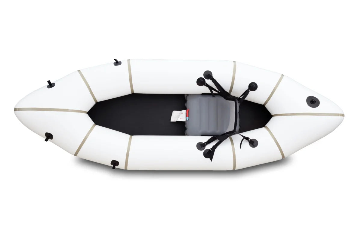 Eine Besonderheit des MRS Surveyor Packraft ist sein weißes, ultraleichtes Material, welches die Sonneneinstrahlung sehr gut reflektiert bzw. weniger Wärme absorbiert und dadurch keine großen Luftdruckschwankungen verursacht.